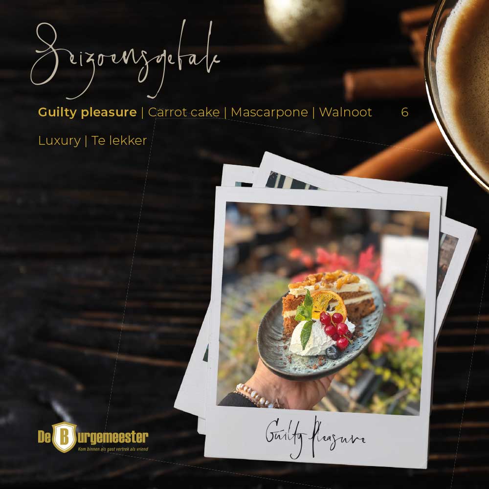Geniet van het seizoen! Probeer eens onze heerlijke warme cortado of feestelijke cocktail en laat je verwarmen door de smaken van de winter. Of wat dacht je van een te lekker Seizoensgebak? Guilty pleasure in wintertime…