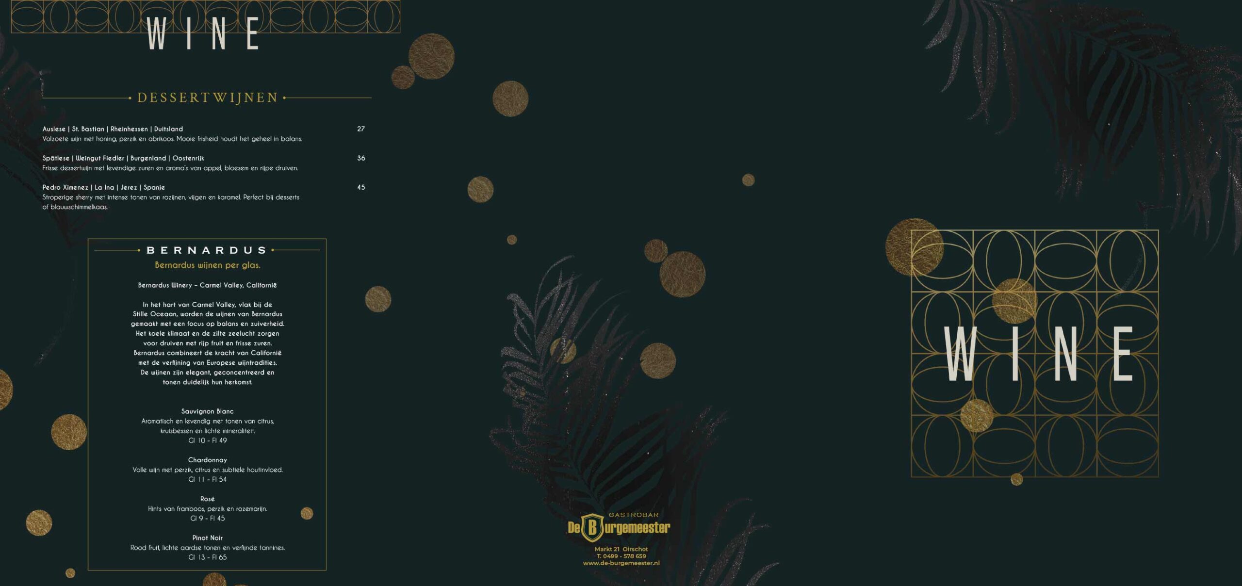 Wijnliefhebbers komen bij ons ruimschoots aan hun trekken. Op de wijnkaart vind je zorgvuldig gekozen wijnen uit alle windstreken — van volle rood tot fris wit en bruisend feestelijk. Laat je adviseren door ons team en vind die perfecte fles om te delen, te vieren of gewoon van te genieten. Let’s go Gastro!